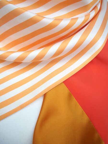 Summer Stripes - Ein fröhlicher Mix, zusammengesetzt aus feinsten italienischen Seidenstoffen, erinnert an gestreifte Sonnenschirme an der Riviera und Sommerferien in Italien. Ein Accessoire, das augenblicklich Urlaubslaune verbreitet und jedes schlichte Outfit zum Blickfang werden lässt.