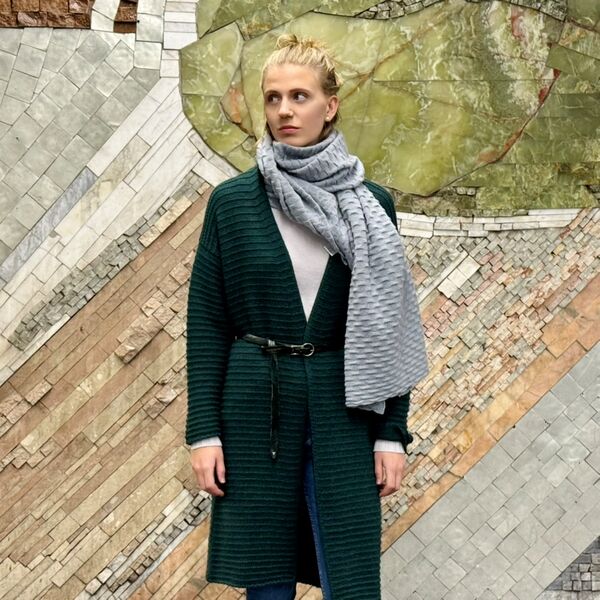 190 x 80 cm und federleicht. Durch das Fischschuppen-Relief ist dieser Riesenschal ein echter Hingucker. Im Winter kuschelig um den Hals gewickelt und im Sommer als Stola um die Schultern gelegt - ein typisches SOUSI-Lieblingsstück.