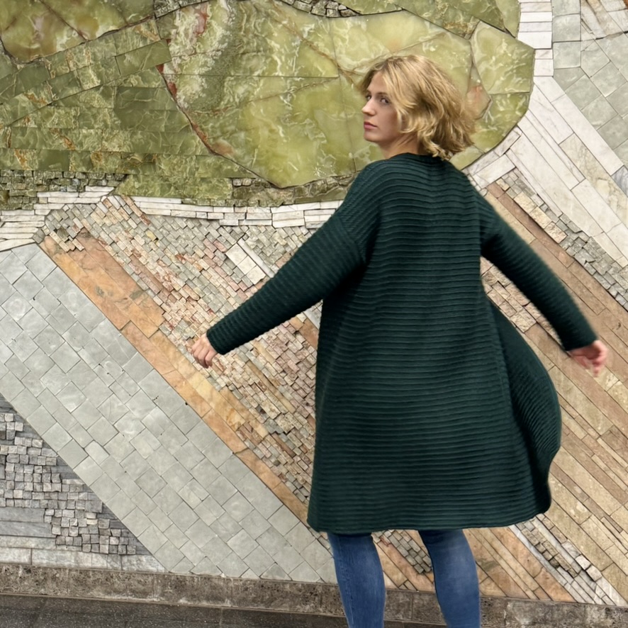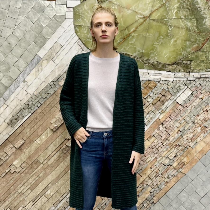 Ein echtes Schätzchen für alle, die lässigen NYC Style lieben. Die Ärmel sind überschnitten, sodass Du SOUSI 106 nicht nur als Cardigan, sondern auch als Mantel über Pullover tragen kannst. Entspannt offen oder mit Deinem Lieblingsgürtel zusammengebunden.